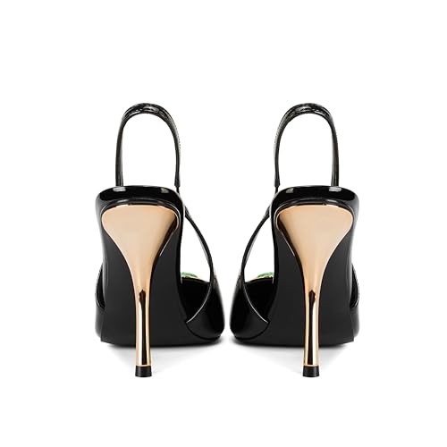 Women's Slingback Stiletto High Heels Crystal Metallic Closed Pointed Toe Pumps Patent Leather Slip on Elastic Strap Heeled Sandals Fashion Party Dress Shoes for Women 6