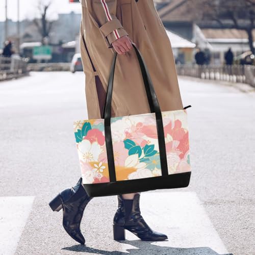 HOT ! Japanese Style Flowers Large Capacity tote bag laptop with zipper laptop tote bag for work for Travel Essentials Beach Gifts Birthday Gifts for Women with tablet