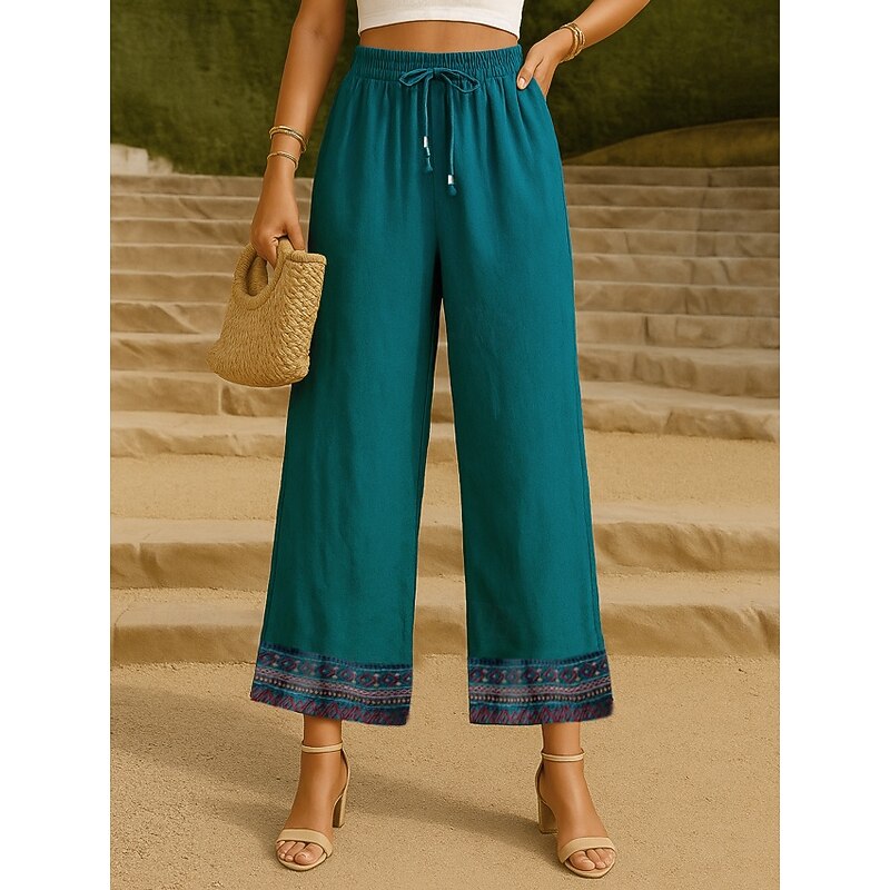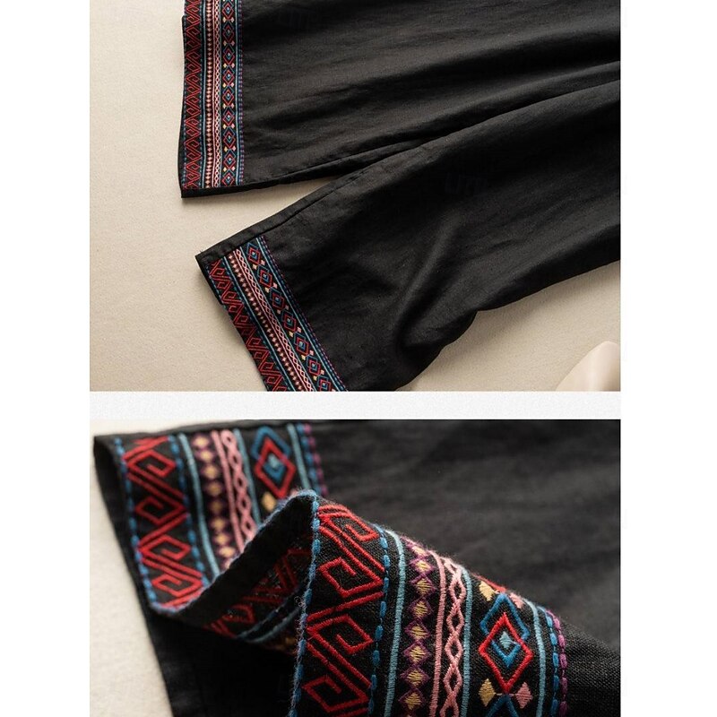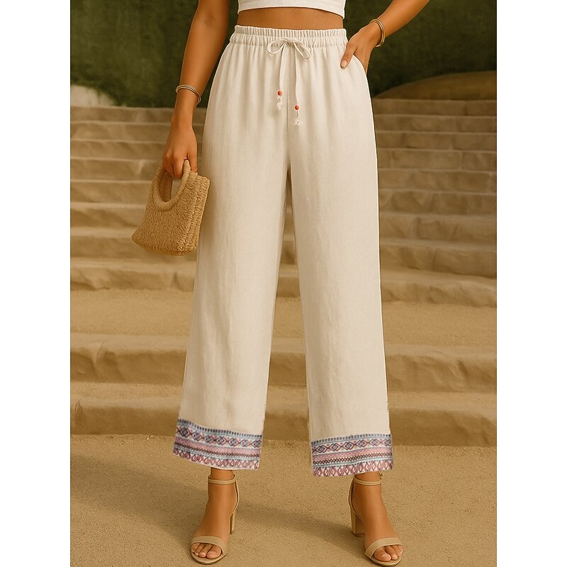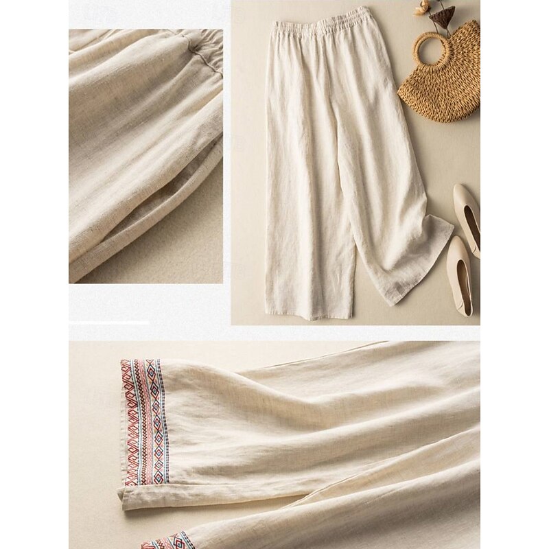 More information about Women's Cotton Linen Pants Chinos Pants Trousers Fashion Ethnic Style Basic Full Length High Waist Floral Embroidered Pocket Drawstring Comfort Outdoor Micro-elastic Vacation Street Daily Apricot