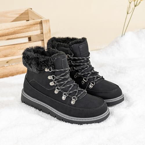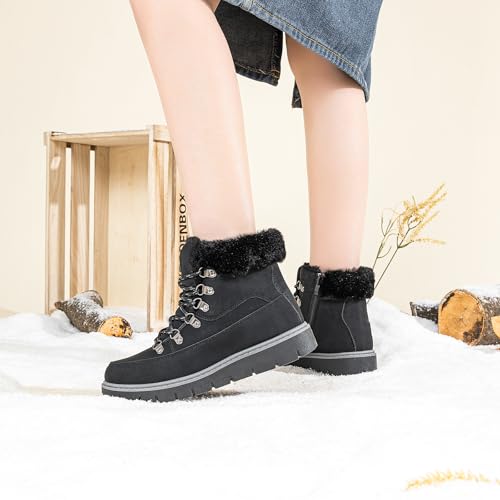 XRH Women’s Winter Warm Boots Black Snow Combat Boots With Zipper,Comfortable Fur Lined Women Ankle Boots Non Slip Hiking Boots For Women 6