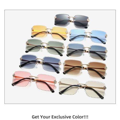 More information about willochra Rectangle Crystal Rhinestone Sunglasses for Women Sparkling Rimless Female Trendy bling Diamond Sunglsses