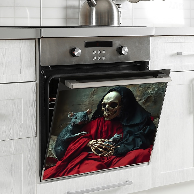 HOT ! Halloween Smiling Skull and Rat Window Decal, Glass Cabinet and Kitchen Self-Adhesive Wall Sticker, Spooky Home Decoration for Halloween Party