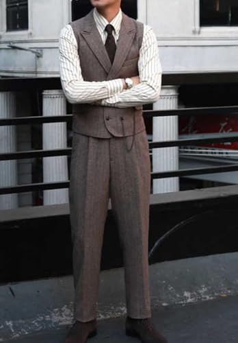 Boys Vest Retro Tweed Lapel Suit Vest for Boys Vintage Herringbone Formal Casual Western Double Breasted Waistcoat 1