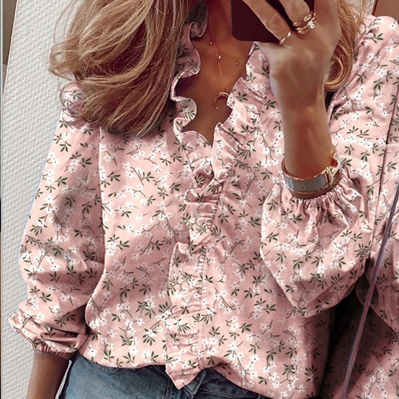 More information about Women's Shirt Blouse White Orange Green Graphic Floral Ruffle Lace Trims Long Sleeve Casual Daily Basic Elegant V Neck Floral S
