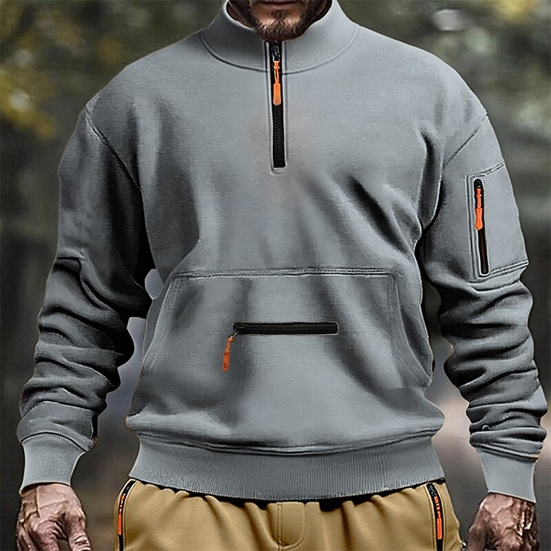 More information about Men's Sweatshirt Quarter Zip Sweatshirt Black Navy Blue Khaki Light Grey Dark Gray Standing Collar Plain Pocket Sports & Outdoor Daily Holiday Polyester Streetwear Basic Casual Spring Fall Clothing