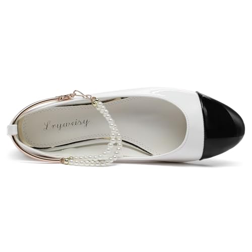 Lryweisy Flats Shoes for Women, Buckle Strap Sparkle Flats Shoes, Pearl Mary Jane Flats for Women Colorful Shiny Ballet Flats, Comfortable Pointed Toe Flats Soft Work Flats Retro Dress Casual Flats 6