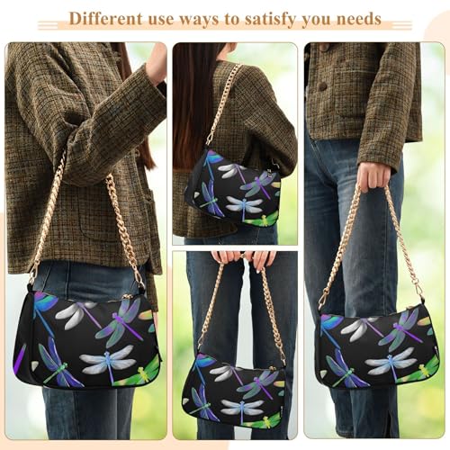 Zipper Hobo Evening Purse Multicolored Cartoon Dragonflies Designer Handbag Women Colorful Shoulder Bag with Chain Strap 6