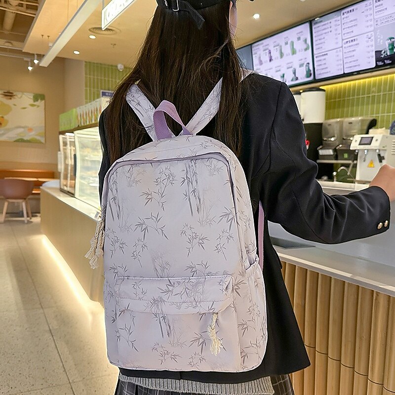 HOT ! Women's Aesthetic Canvas Backpack with Bamboo Print – Lightweight School Bag for Teen Girls & College Students