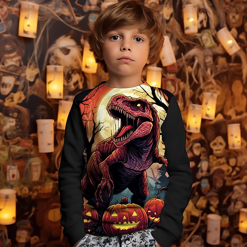 Boys 3D Animal Pumpkin Dinosaur Sweatshirt Long Sleeve 3D Print Summer Fall Fashion Streetwear Cool Kids 3-12 Years Outdoor Halloween Casual Regular Fit 6