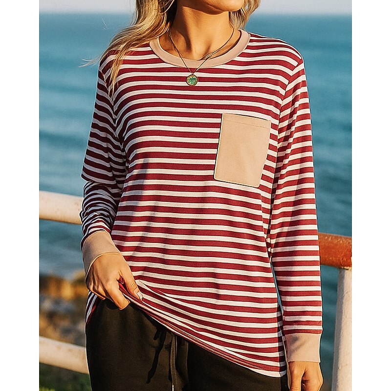 $17.99 - Women's Pullover Sweatshirt Casual Tops Pocket Long Sleeve Top Athleisure Fall Stripes Fashion Outdoor Jogging Running Sportswear Activewear Pink Red Royal Blue 2025. Shop for cheap Hoodie & Sweatshirt online? Buy at lightinthebox.com on sale today!
