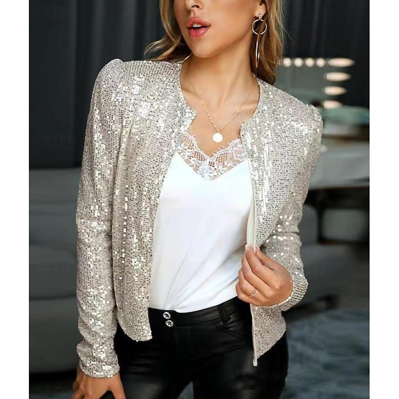 More information about Women's Casual Jacket Dailywear Sequin Solid Color Cool Regular Fit Outerwear Long Sleeve Spring Rose Gold S
