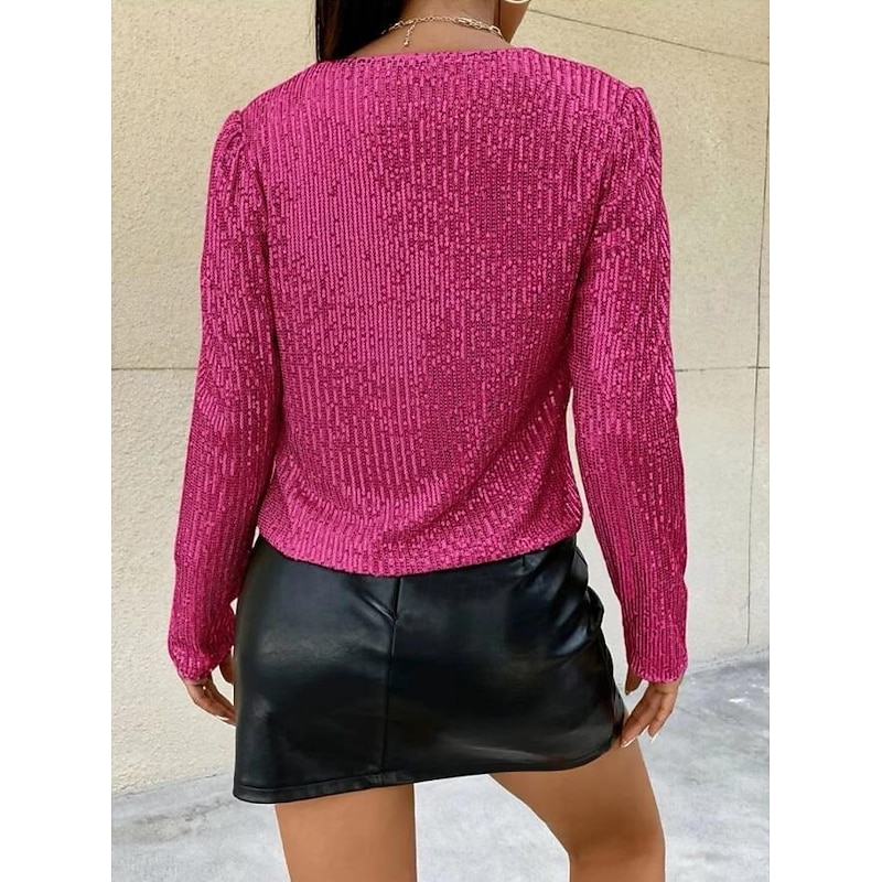 HOT ! Women's Casual Jacket Dailywear Sequin Solid Color Cool Regular Fit Outerwear Long Sleeve Spring Rose Gold S