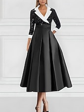 Tuxedo Dress A-Line Formal Wedding Wedding Guest Satin Elegant 3/4 Length Sleeve Ankle Length Tea Length Notched Lapels Lapel 5