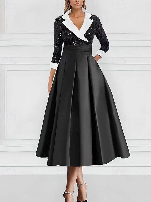 Tuxedo Dress A-Line Formal Wedding Wedding Guest Satin Elegant 3/4 Length Sleeve Ankle Length Tea Length Notched Lapels Lapel 4