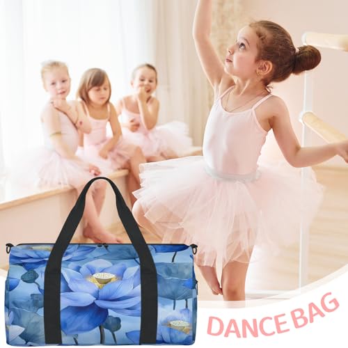 Lotus Travel Duffle Bag Sports Yoga Weekender Overnight Workout Bags Blue Floral Lightweight Waterproof Gym Tote Bag for Women 4