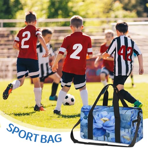 Lotus Travel Duffle Bag Sports Yoga Weekender Overnight Workout Bags Blue Floral Lightweight Waterproof Gym Tote Bag for Women 3