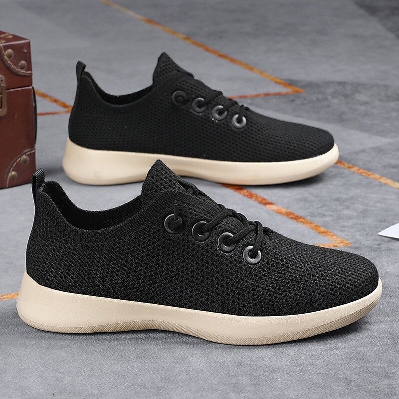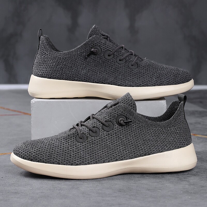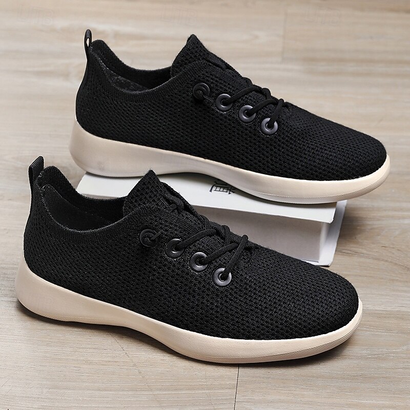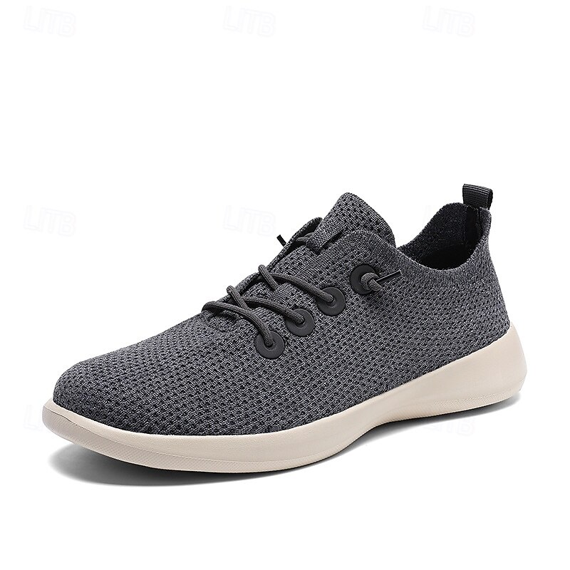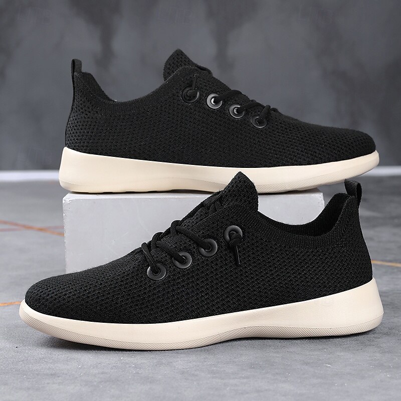 HOT ! Men's Lightweight Breathable Knit Sneakers - Casual Lace-Up Walking Shoes for Daily Wear & Travel