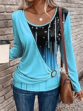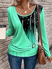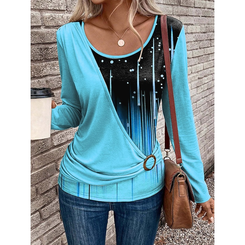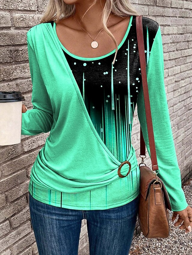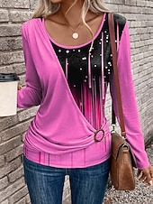 More information about Women's T Shirt Graphic Geometric Gradient Vintage Stylish Modern Long Sleeve Crew Neck Regular Tops Daily Patchwork Print Pink Blue Purple Green Spring Fall Winter