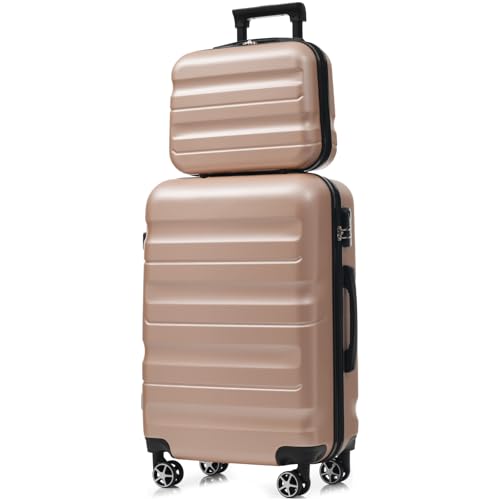 6 Piece ABS Hardshell Luggage Set, Lightweight Suitcases with Dual Spinner Wheels, Complete Carry On and Checked Bags for Family Travel & Business (Champagne) 6