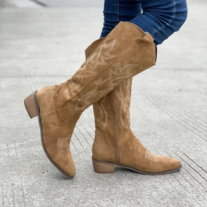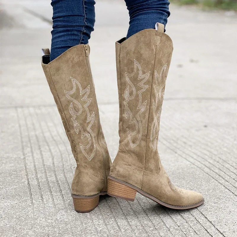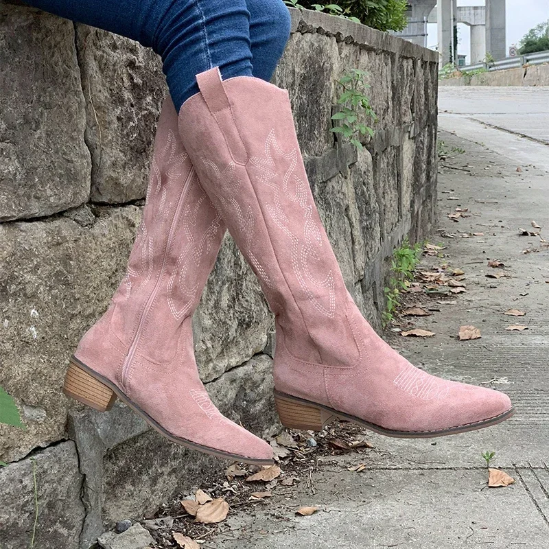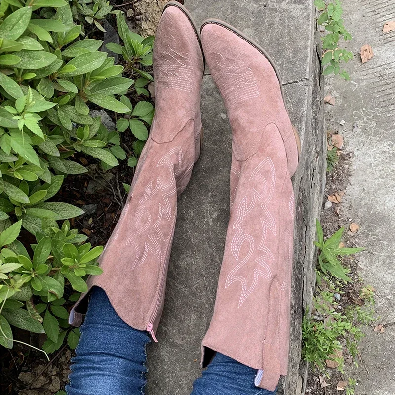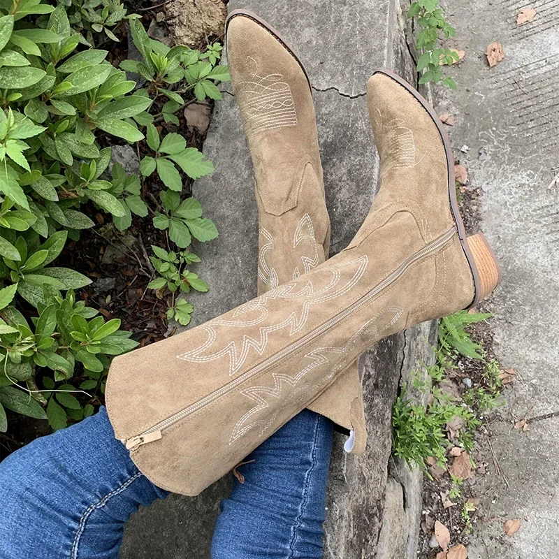 Women's Fashion Chunky Heeled Cowboy Boots Zipper Style Pointed Toe