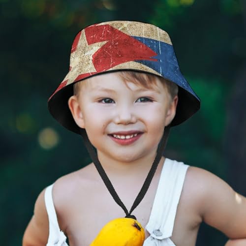 HOT ! Vintage Aged and Scratched Cuban FlagChildren's Bucket Hat for Boys and Girls, Breathable Summer Beach Hat52cm