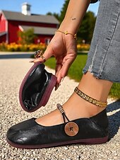 More information about Women's Brown Two-Way Wide Fit Mary Jane Flats with Decorative Straps – Retro & Casual Barefoot Shoes for Countryside Strolls, Farmer's Market Visits & Daily Errands