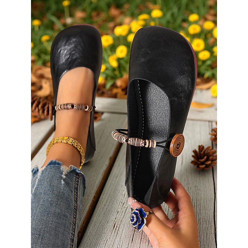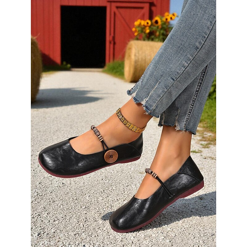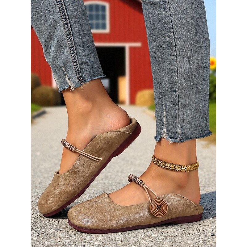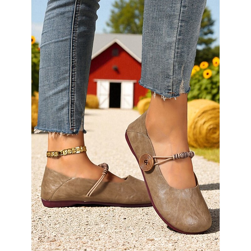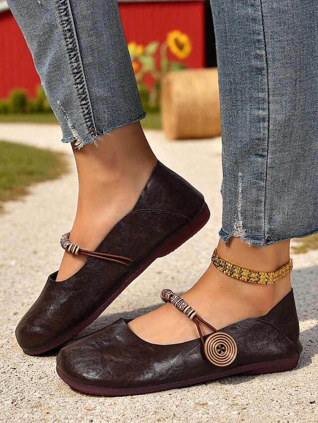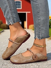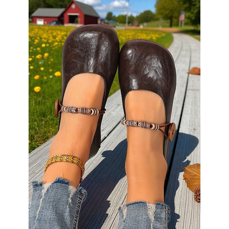 HOT ! Women's Brown Two-Way Wide Fit Mary Jane Flats with Decorative Straps – Retro & Casual Barefoot Shoes for Countryside Strolls, Farmer's Market Visits & Daily Errands