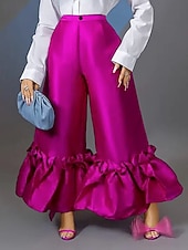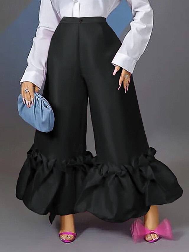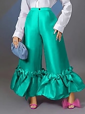 More information about Women's Wide Leg Fashion Streetwear Full Length Natural Plain Ruffle Elastic Waist Comfortable Street Holiday Going out Black Fuchsia Green Fall Regular Fit