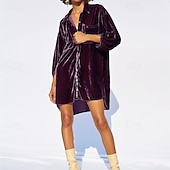 More information about Women's Shirt Blouse Plain Modern Casual Long Sleeve Shirt Collar Regular Tops Daily Holiday Pocket Buttons Wine Purple Brown Fall