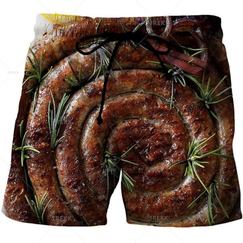 HOT ! Men‘s Gourmet Food Graphic Beach Grilled Sausage Shorts for 3D Printed Sausage Boardshorts Meat Sausage Short Pants