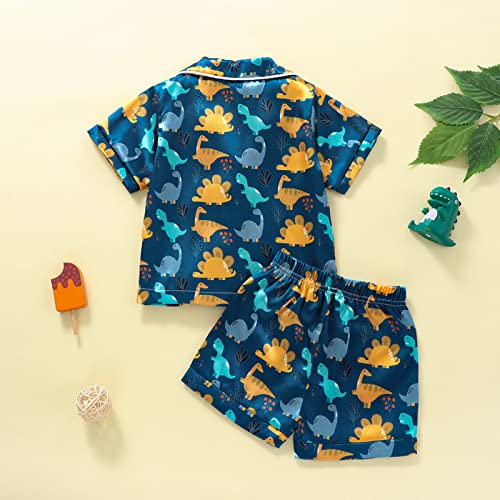 Qiylii Toddler Baby Boy Silk Pajamas Cow/Dinosaur Satin Pajamas Set Short Sleeve Button-Up Top Shorts 2PC PJs 5