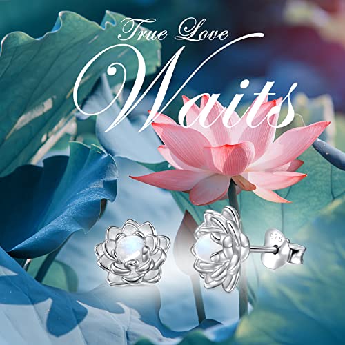 Moonstone Lotus Jewelry Set 925 Sterling Silver Lotus Flower Ring Engraved True Love Waits Natural Healing Buddha Spiritual Yoga Lotus Jewelry Set Gifts for Women 4