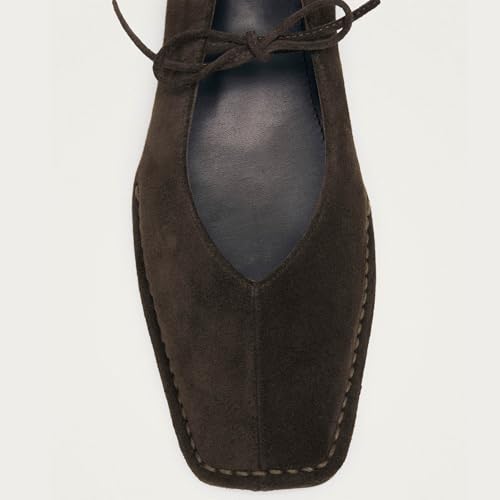 Women's Lace Up Ballet Flats Square Toe Slip On Ballerina Shoes Cute Bow Tie Mary Jane Comfy Casual Office Flat Shoes 5