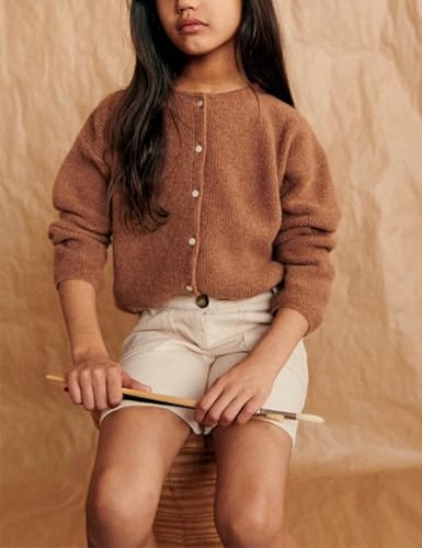 Lviefent Girls Knit Cardigans Kids Casual Crew Neck Button Down Long Sleeve Sweater Jumper Layer Top 4