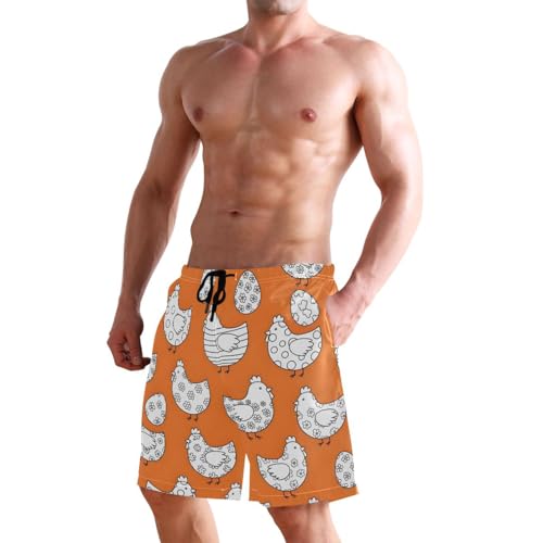 HOT ! Men's Swim Trunks Quick Dry Swimming Shorts with Pocket Chicken Eggs Pattern on Orange Swimsuit Trunks