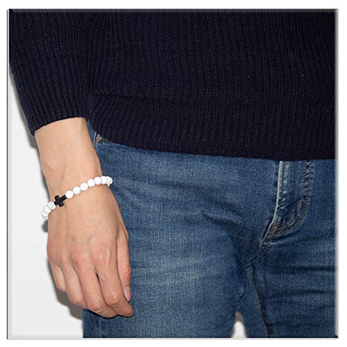 Xusamss Fashion Religious Cross Bracelet 8mm Tiger Eye Turquoise Beads Elastic Bracelet,7 1/2 wrist 4