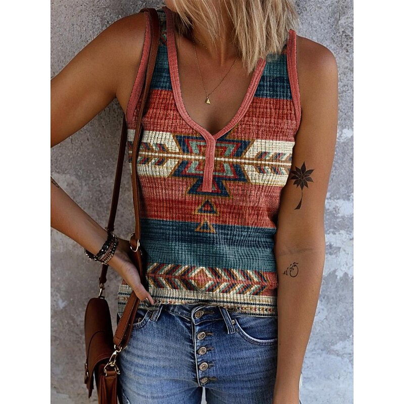 More information about Women's Camisole Tank Top Graphic Geometric Vintage Stylish Ethnic Sleeveless V Neck Regular Tops Daily Print Black Navy Blue Blue Orange Brown Summer Spring