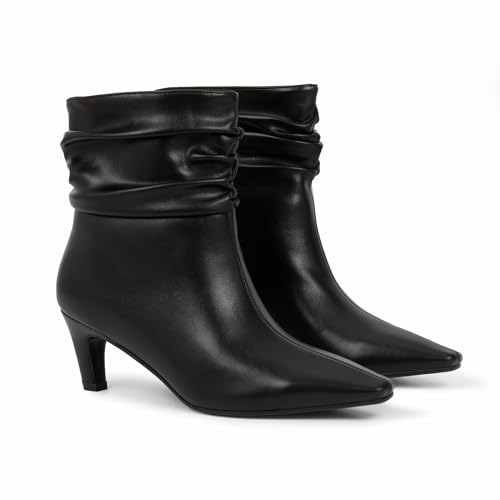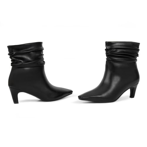 More information about Women's Kitten Heel Slouch Ankle Boots Pleated Closed Square Toe Booties