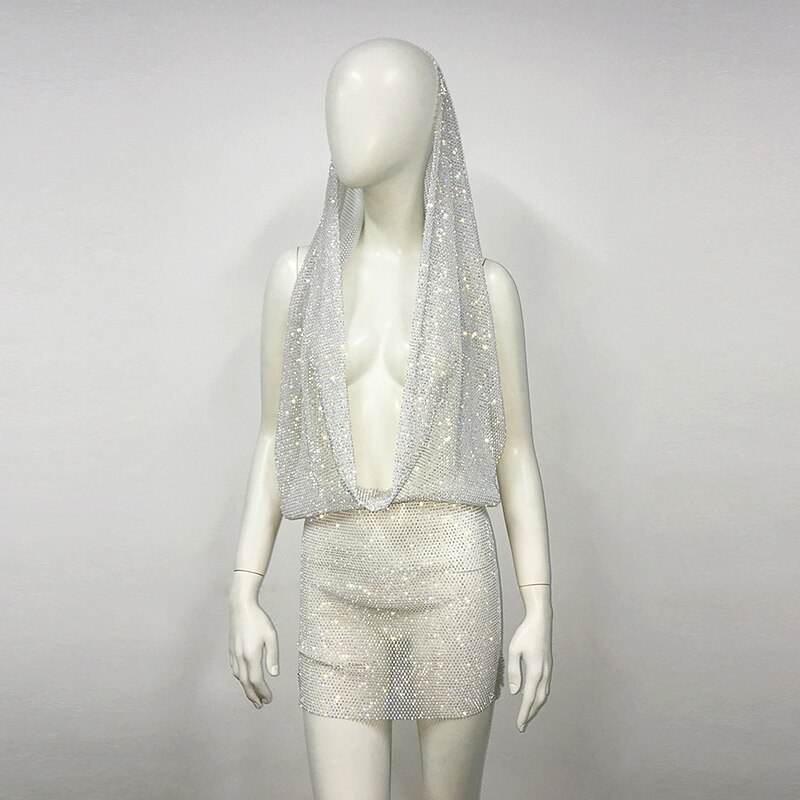 Metallic Backless Sparkle Mini Dress Disco Solid Color Deep V Fancy Dress Women's Carnival Party Club Dress 9