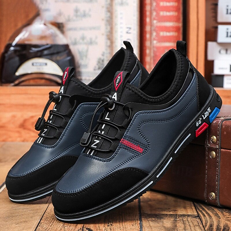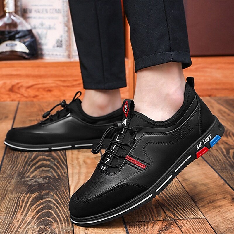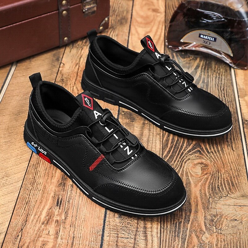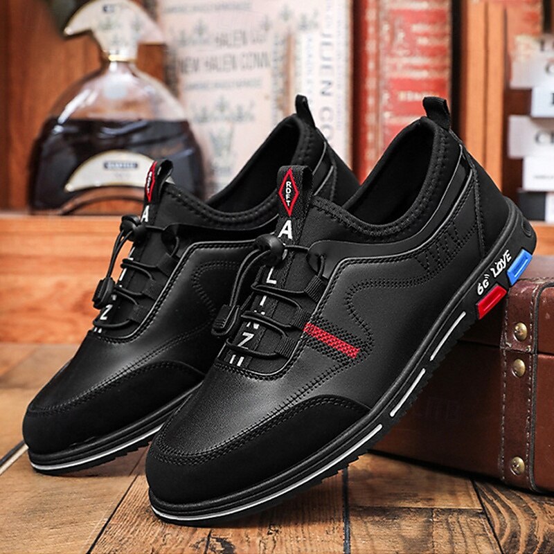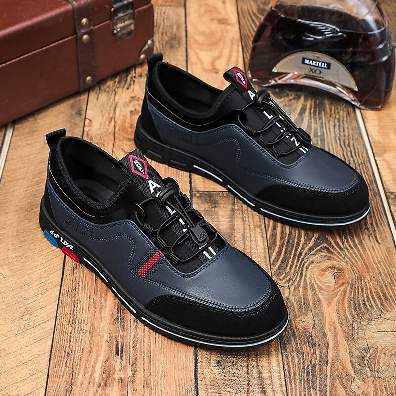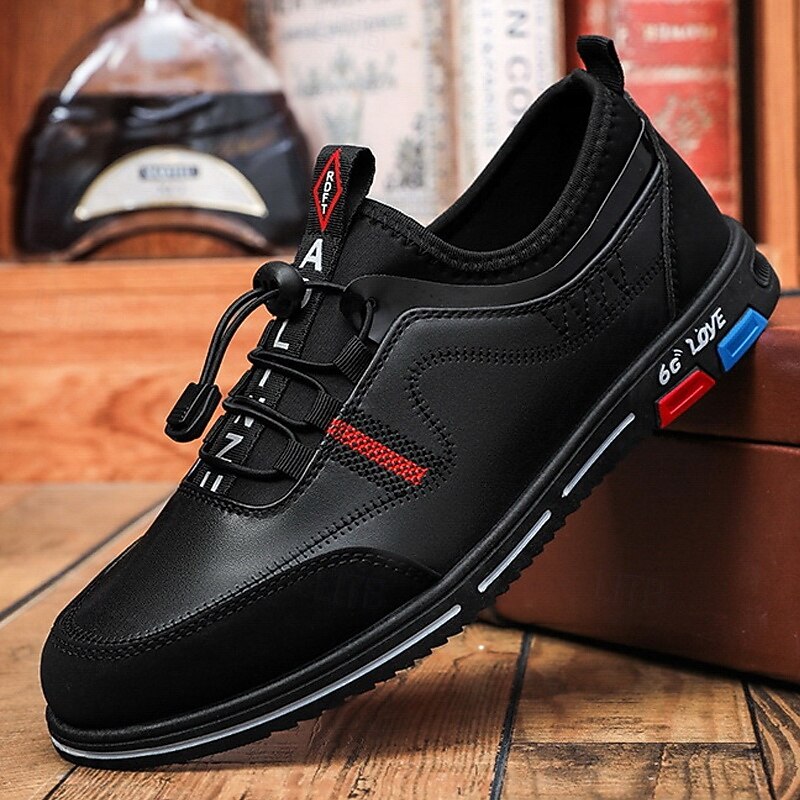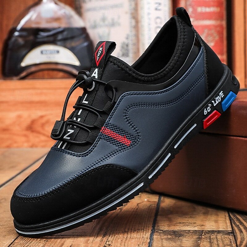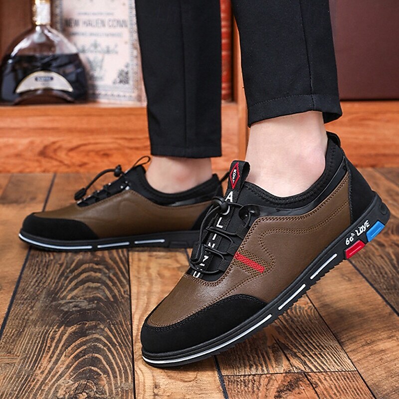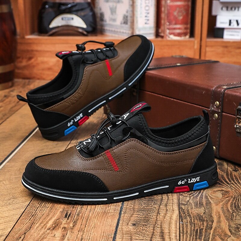 HOT ! Men's Premium Brown and Black Faux Leather Lace-Up Sneakers with Colorful Branding for Casual and Sports Activities