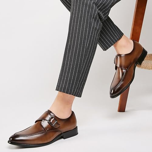 Men's Leather Monk Strap Dress Loafers Fashion Classic Cap Toe Low Top Slip On Oxford Shoes Casual Business Office Wedding Formal Shoes 6