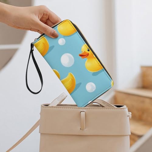 Leather Wallets Large Capacity Card Case, Clutch Wallets Zipper, Ideal for Credit Cards, Rubber Ducky 2