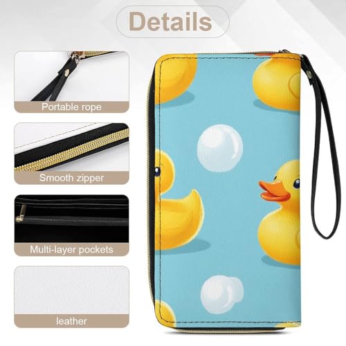 Leather Wallets Large Capacity Card Case, Clutch Wallets Zipper, Ideal for Credit Cards, Rubber Ducky 5