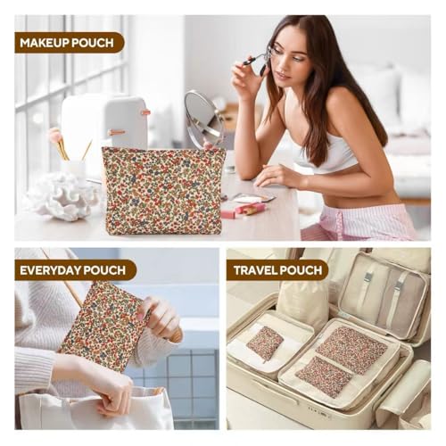 3Pcs Floral Makeup Bags, Cosmetic Bags for Women, Large Capacity Corduroy Makeup bag Set and Portable Mini Makeup Bag,Aesthetic Women Handbags Purses, Travel Essentials Aesthetic Stuff (Floral 01) 7