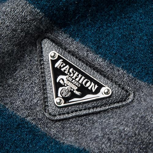 Men's 100% Wool Quarter Zip Stripes Sweaters Casual Long Sleeve Knitted Stand-Up Collar Pullover Polo Sweater