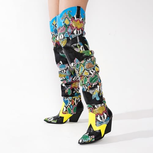 Cape Robbin Women's Thigh High Cowboy Boots with Chunky Heel - Faux Snakeskin Western Booties | Slip Resistant Block Heels for Fall Winter (Hilda) 6