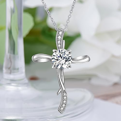 • ✝ Infinity Cross Pendant ✝ Wear this simple and enduring symbol of your faith with style! The womens moissanite cross pendant is made of D-E color moissanite diamond. 1CT center moissanite diamond brighter than a diamond or any other gemstones and you'll never get tired of seeing the sparkle from all angle!