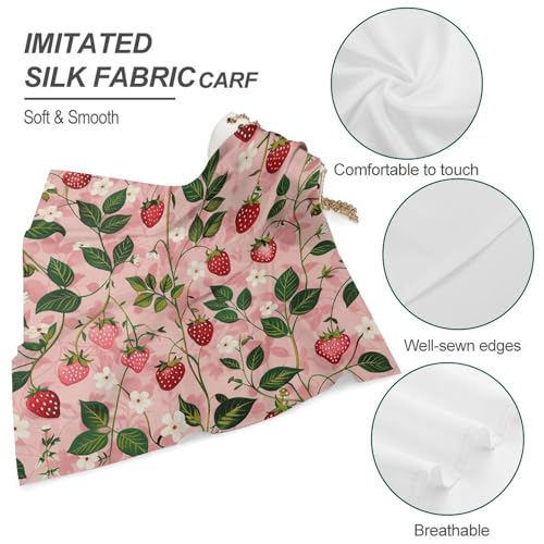 Peach Strawberry Print Silk Scarf Fashion Satin Head Scarf Lightweight Head Scarves for Neck Silk Scarves for Women Men Boho Hair Wrap Sleeping Kerchief Bandanas Pocket Square 18" X 18"