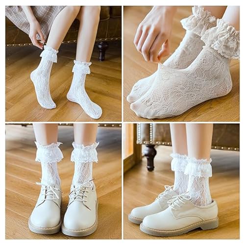 • 【Cute White Lace Socks for Women】 The white lace ruffle socks women are made of blend materials of cotton,spandex and lace,soft and skin-friendly. The white lace ruffle socks fit women US shoe sizes 5-11,designed with slightly different patterns,can match with most of your daily outfits,especially great for bridal and bridesmaid to attend wedding party,showing your elegant personal tastes