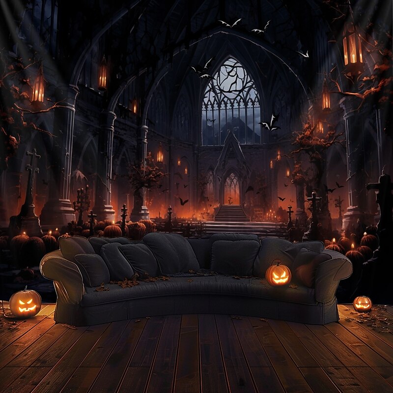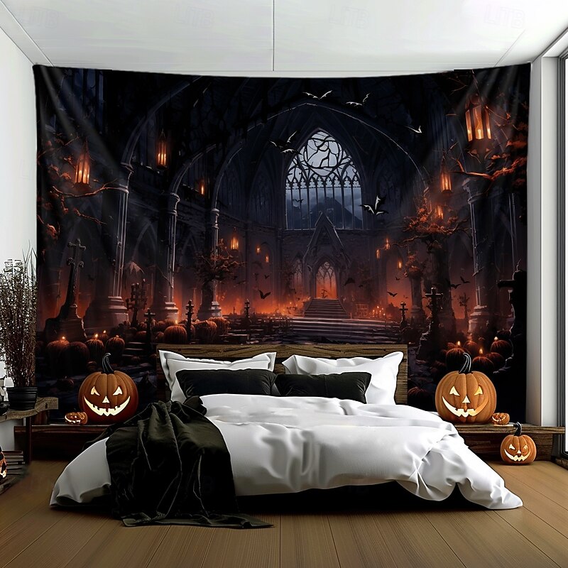 HOT ! Halloween Haunted Castle Hanging Tapestry Wall Art Large Tapestry Mural Decor Photograph Backdrop Blanket Curtain Home Bedroom Living Room Decoration